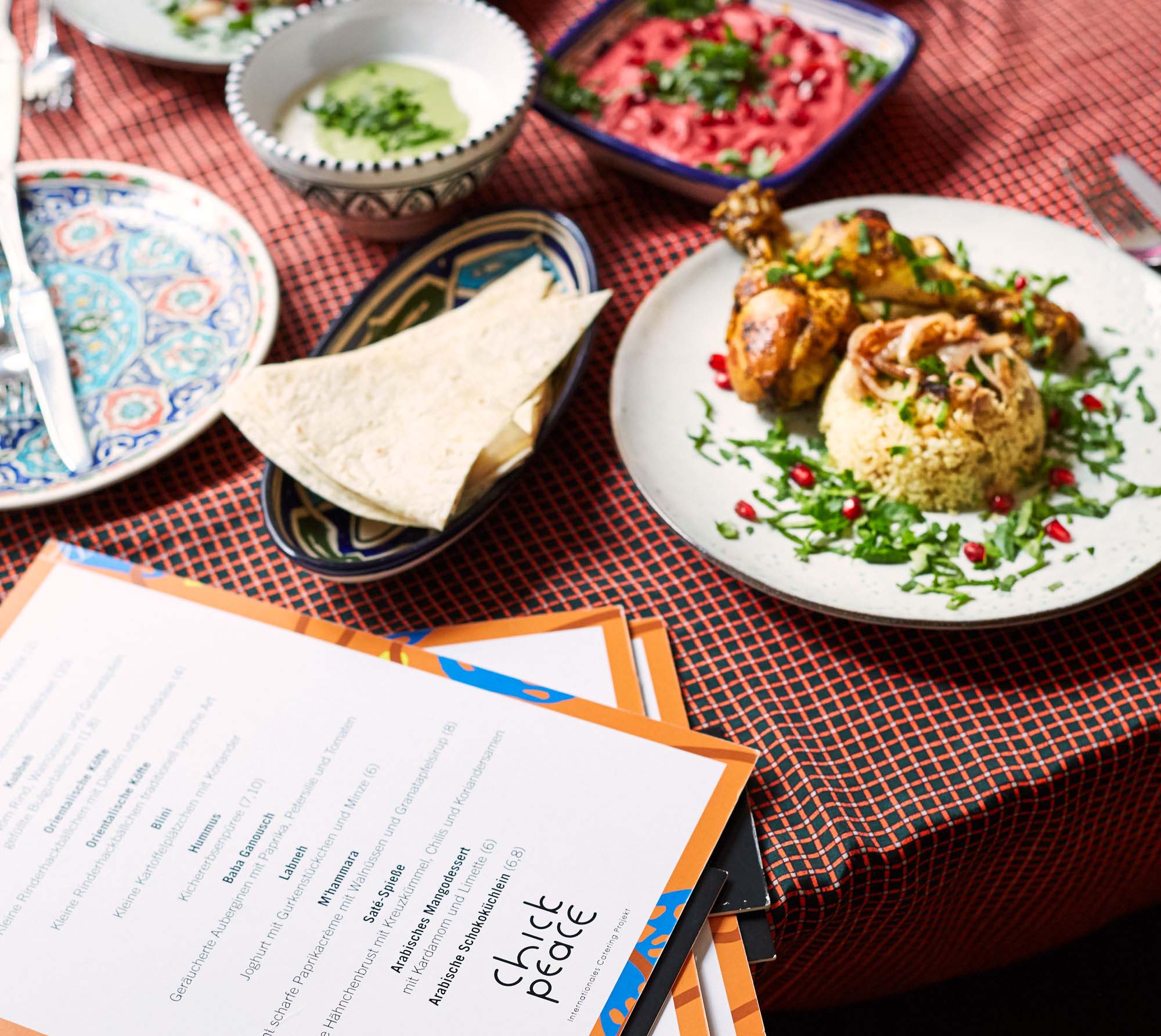 Bei Chickpeace arbeiten Frauen aus Syrien, Eritrea, Somalia und Afghanistan. Das spiegelt sich auch in der Speisekarte wider, auf der Gerichte wie Safran-Hühnchen mit winterlichem Couscous oder Kousa mashi, gefüllte Zucchini, mit orientalischem Mandelreis und natürlich verschiedene Mezze stehen. Diese und andere vielfältige Speisen bietet Chickpeace bald von Montag bis Mittwoch in der Comune an, einem soziokulturellen Raum im Gängeviertel mitten in der Hamburger City. Bisher entdecken die Gäste Chickpeace hauptsächlich über Mundpropaganda und Facebook. „Die Kunden freuen sich, dass sie mit ihren Aufträgen etwas Sinnvolles unterstützen können“, erzählt Sabine Cole, die sich bei Chickpeace um die Öffentlichkeitsarbeit kümmert. Mit dem Mittagstisch soll nun jedermann in den Genuss der bunten Köstlichkeiten kommen.