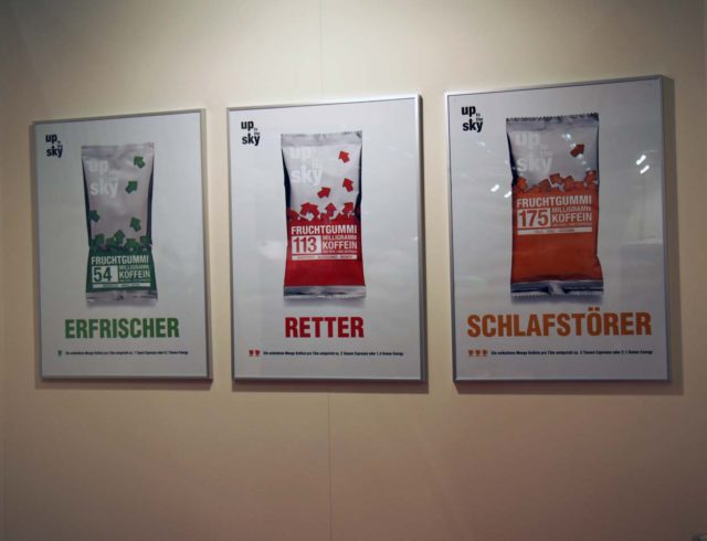 Up to the Sky präsentierte 2017 mit dem Slogan „Nasch dich wach“ auf der Internorga in Hamburg drei verschiedenen Sorten Fruchtgummi.
