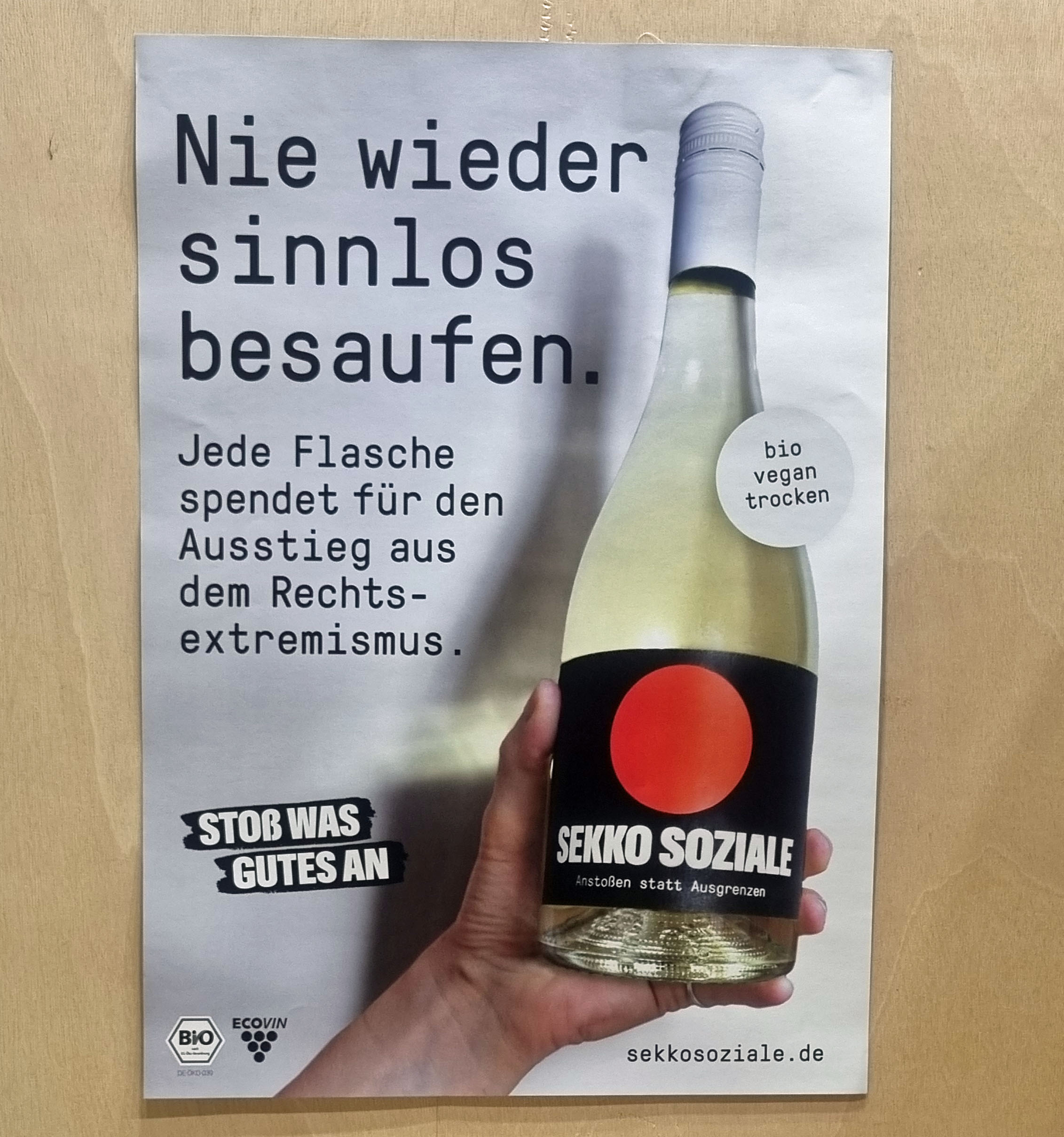 Die Grundidee ist einfach formuliert, aber konsequent umgesetzt: Mit jeder verkauften Flasche fließt ein Teil der Erlöse in Projekte, die gesellschaftlichen Zusammenhalt stärken. Konkret unterstützt SEKKO SOZIALE die Initiative EXIT-Deutschland, die Menschen beim Ausstieg aus rechtsextremen Strukturen begleitet. Damit wird das Produkt selbst zum Träger einer klaren Botschaft: „Anstoßen statt Ausgrenzen.“