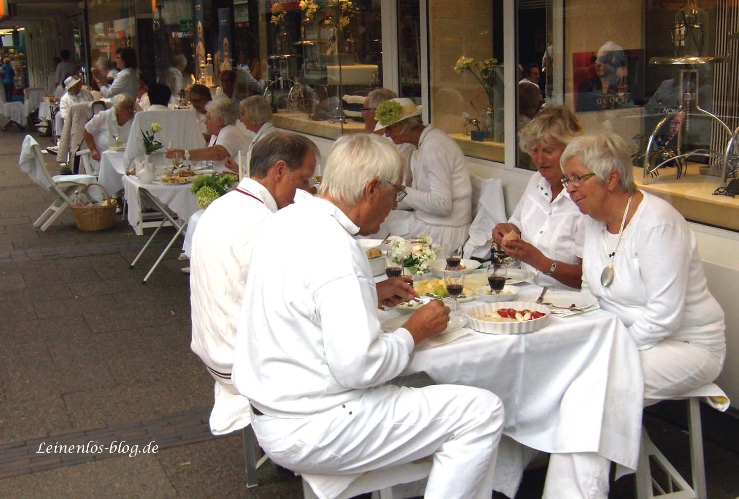 Wer heute am späten Nachmittag oder am Abend noch zum Einkaufsbummel durch die Neugrabener Marktpassage ging, staunte nicht schlecht: Ganz in Weiß gekleidete Menschen saßen an edel gedeckten Tischen mit weißen Tischtüchern und ließen es sich gut gehen. Das Weiße Dinner fand in diesem Jahr zum ersten Mal auch in Hamburg-Neugraben statt. Veranstalter war die Vereinigung Süderelbe mit freundlicher Unterstützung durch den Verfügungsfond des Stadtteilbeirates Neugraben. Jedermann war eingeladen, ganz in Weiß gekleidet mit gefülltem Picknickkorb, weißem Tisch, weißem Geschirr und weißer Tischdecke am Weißen Dinner teilzunehmen.
