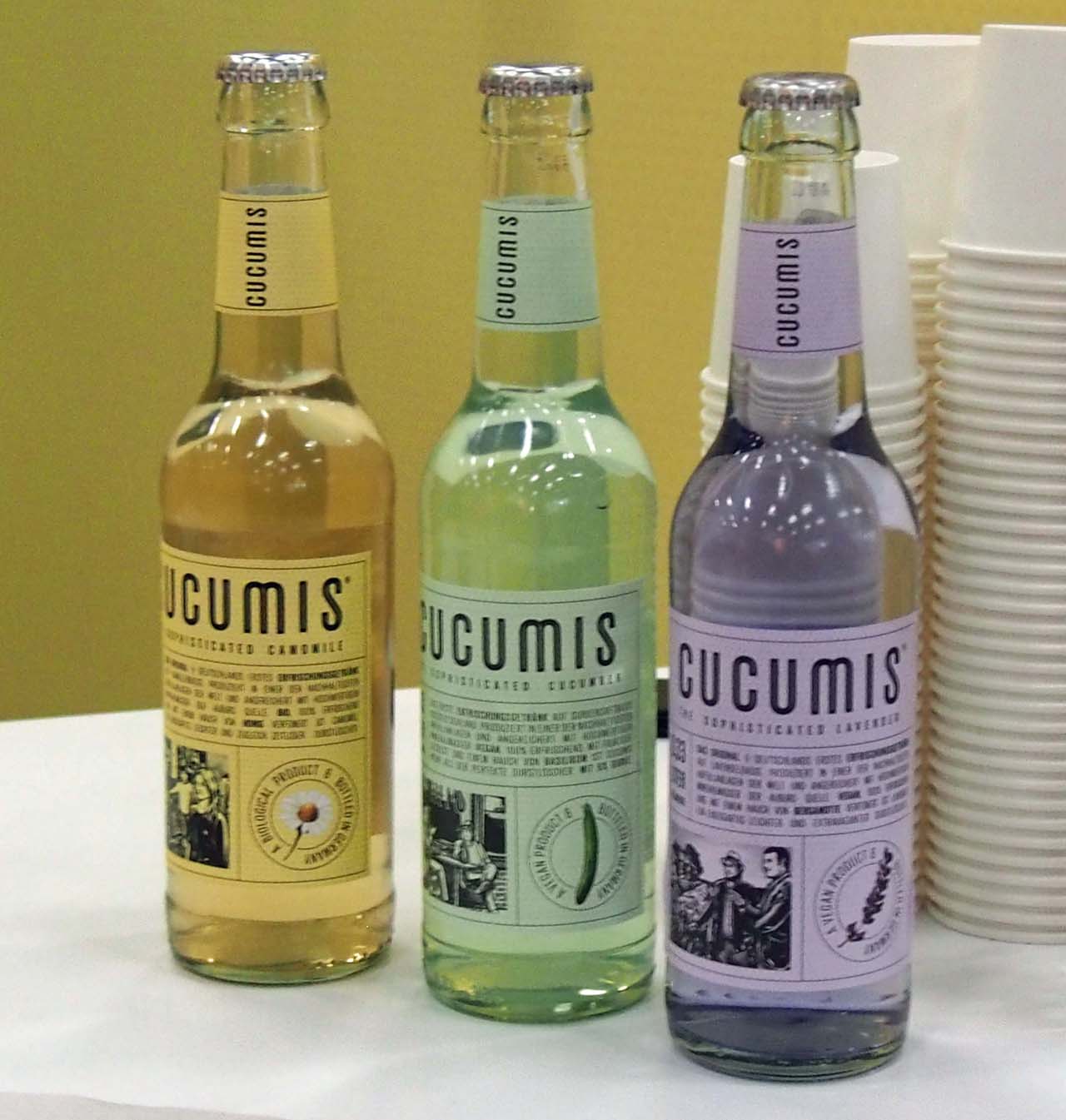 Die kreativen Erfinder der Gurkenlimonade Cucumis, Till Fischer-Bergst und Vasco Emmanuel Kulke, stellten auf der Internorga ihre dritte Limonaden-Erfindung vor: nach dem großen Erfolg ihres Erstlings folgte im letzten Jahr Lavendel und nun Kamille. Das Getränk ist so neu, dass es noch nicht im Handel erhältlich ist. Für die Internorga gab es eine prototypische Abfüllung von 200 Flaschen.